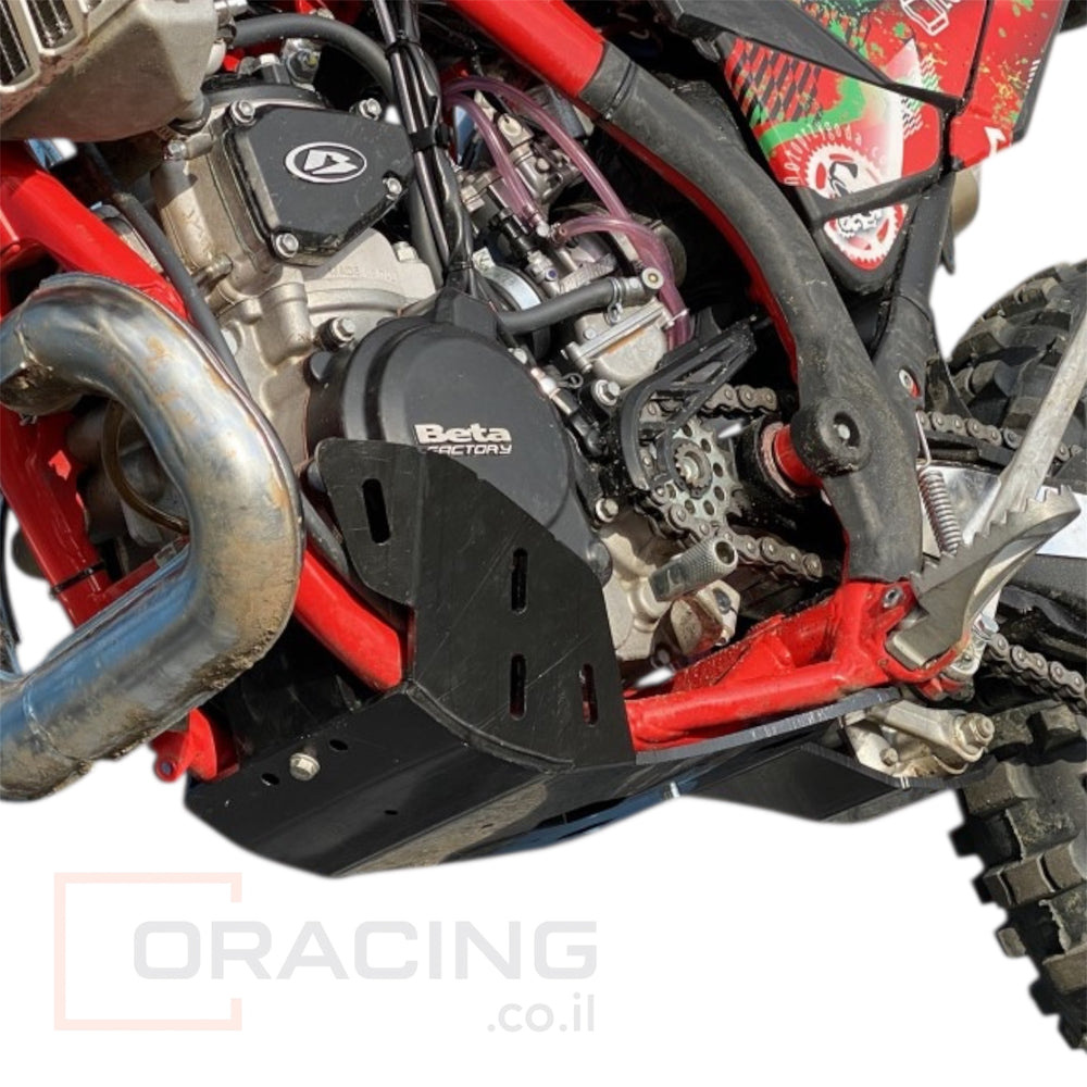 המוצר כולל שילוב בין סקיד־פלטת HDPE עמידה ומגן לינק מתוכנן, אשר יחד יוצרים הגנה אמיתית לרכיבת שטח קשה, סלעים, קפיצות ונפילות — כך שמנוע, מתלה וקישורית נשמרים לאורך זמן.