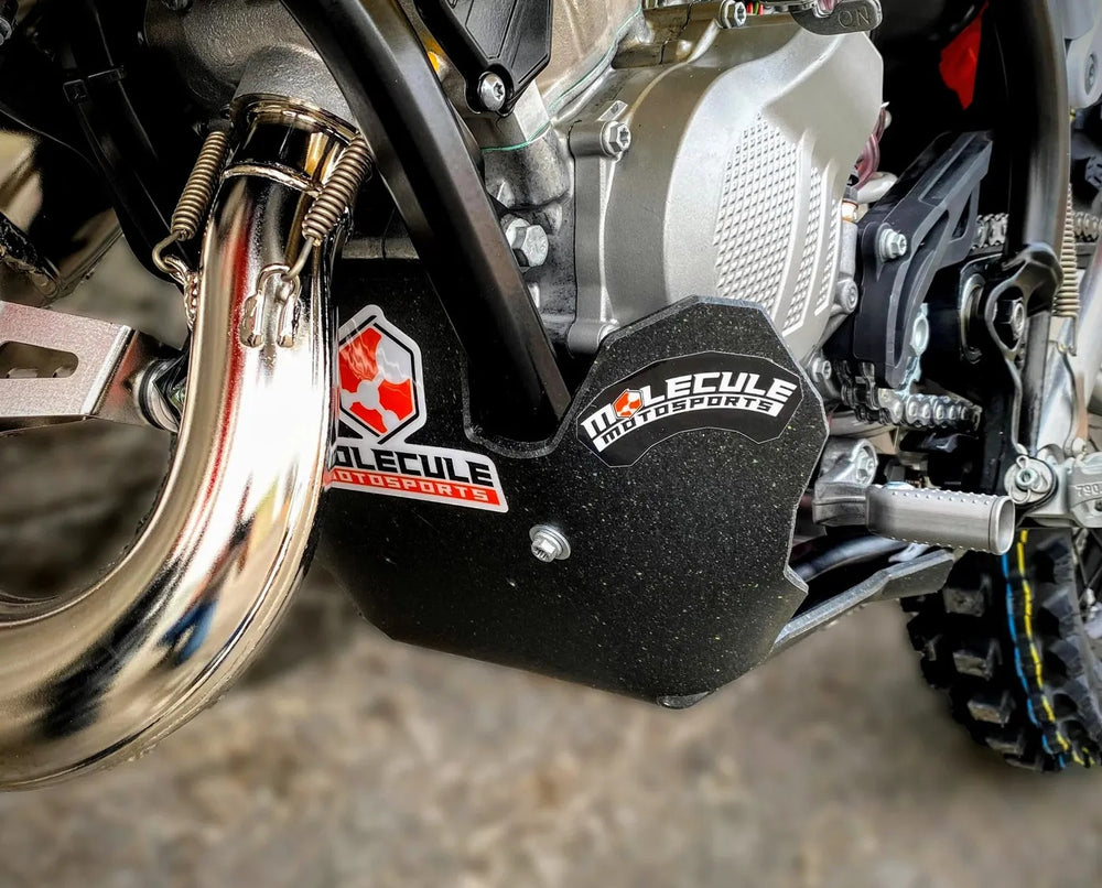 מיגוני הגחון של MOLECULE מיוצרים בעבודת יד על ידי עסק משפחתי בארה"ב. כל מיגון תוכנן לספק התאמה מדויקת (Exact Fit) וייחודית לכל דגם אופנוע. המיגונים שלנו בנויים מ-Billet UHMW, חומר בעל תכונות עמידות לשחיקה טובות יותר מאלומיניום ואפילו מפלדת פחמן.