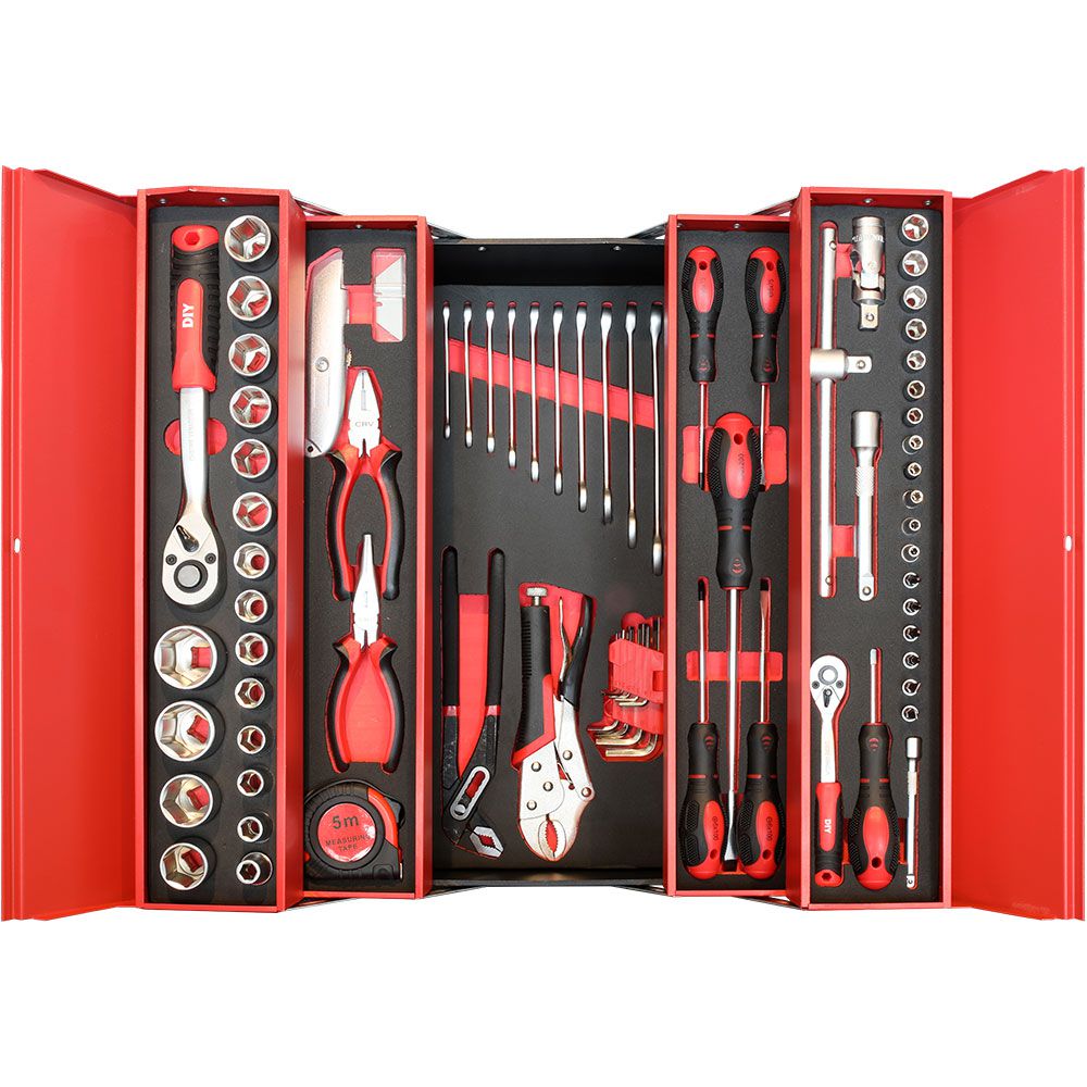כולל כלי עבודה חיוניים: מפתחות, בוקסות, מברגים, פליירים ועוד