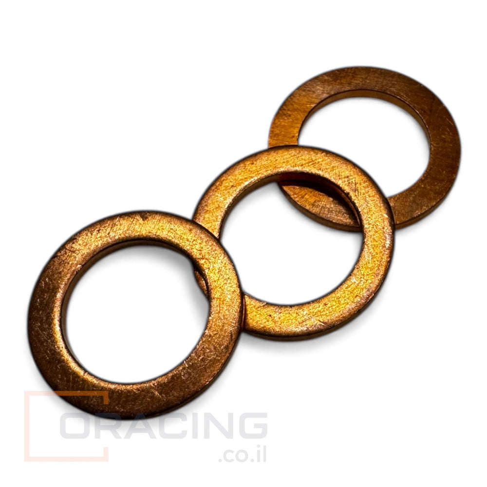 סט של 3 שייבות נחושת איכותיות המתאימות לבורג ריקון שמן בקוטר M12. אידיאליות להבטחת אטימה מושלמת ולמניעת נזילות